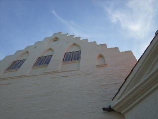 | 澄んだ青い空をバックに旧市街の教会を仰ぎみる |