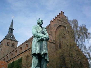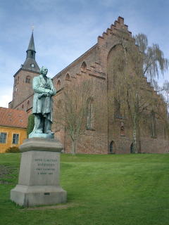 | 教会前の公園に立つアンデルセン像 |